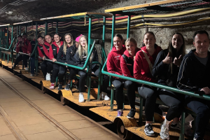 Zawodniczki zwiedziły Trasę Turystyczną z Ekspozycją Multimedialną, skorzystały z podziemnych atrakcji: przejazd kolejką, zjazd podziemną zjeżdżalnią a przede wszystkim sprawdziły nasze podziemne boisko ;).